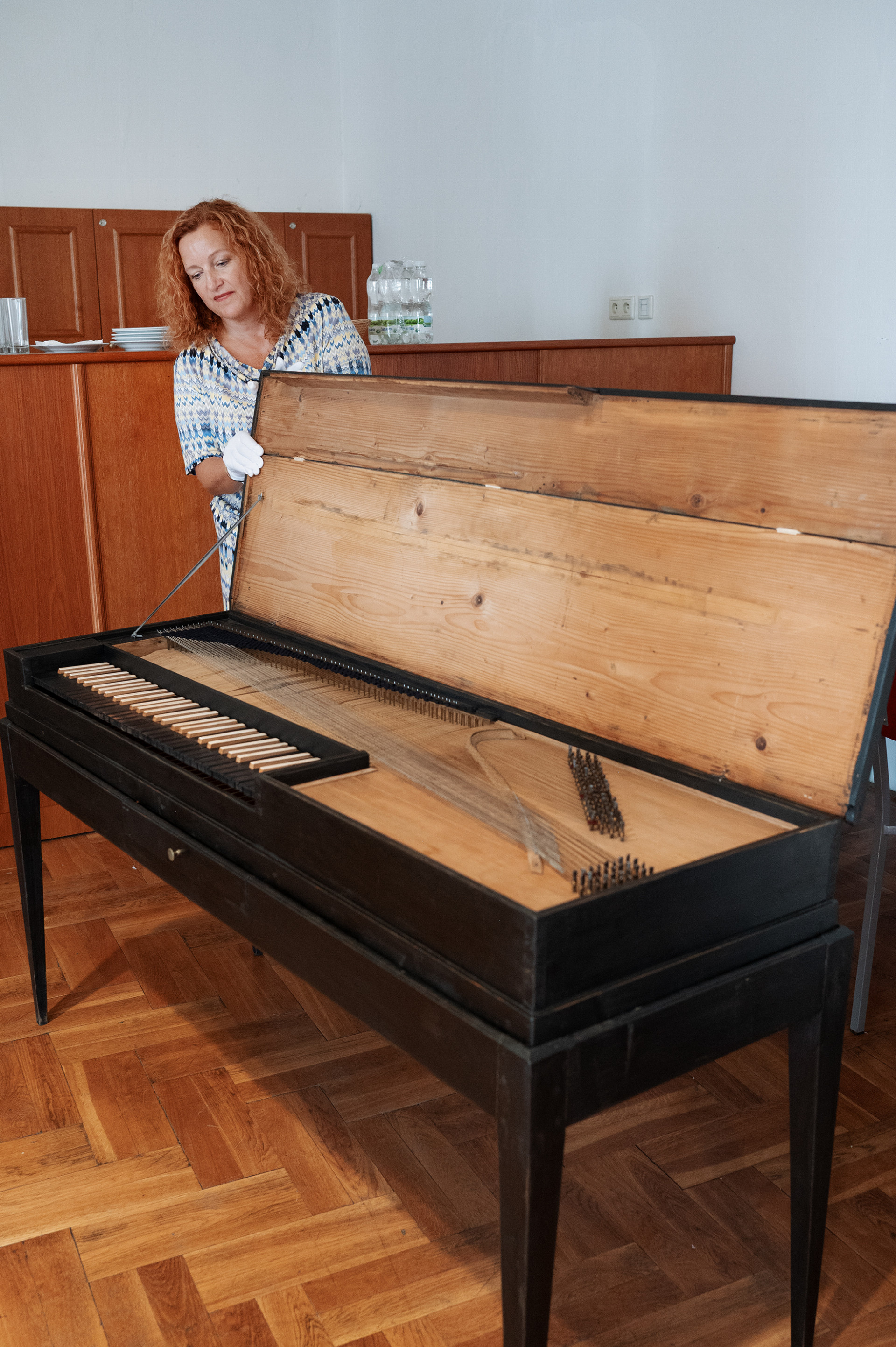 Klavichord, původně majetek nakladatele Romualda Prombergera, se do olomouckého prostředí dostal i díky ilustrátorovi Adolfu Kašparovi. Restaurování se ujala specializovaná dílna v Bystřeci. „U tohoto nástroje bylo například nutné znovu zhotovit basové struny, které jsou opředeny měděným pocínovaným opřádlem, a to se dnes už nedá sehnat. Proto jsem je musel sám pocínovat,“ popisuje restaurátor Jan Bečička.