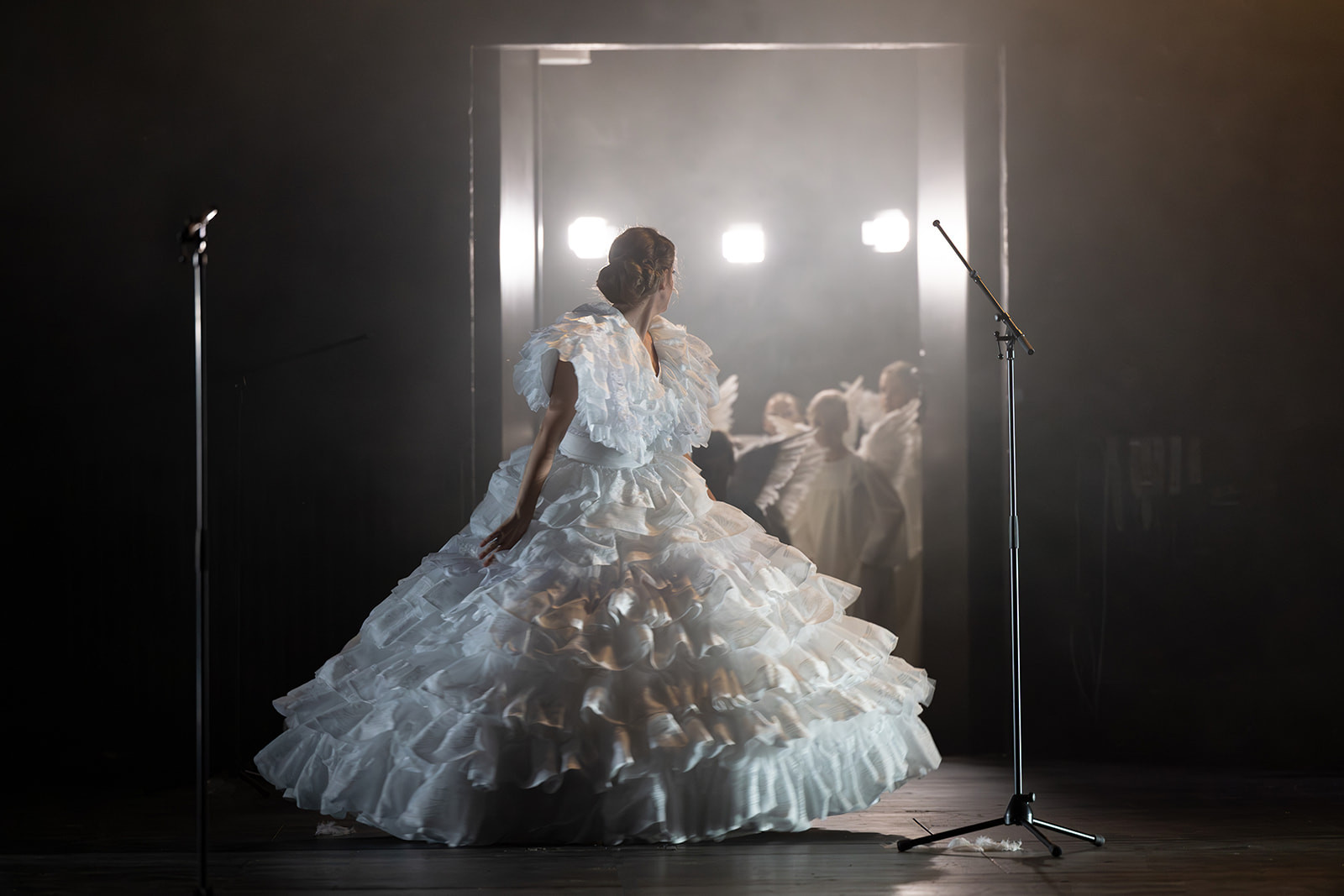 Zajímavý moment dramatu přidává i přítomnost malých andílků z dětského pěveckého sboru BoDo centrum, kteří se na jevišti objevují v bílých košilkách a s křidélky a symbolicky tak připomínají nevinnost, která sleduje i ty nejtragičtější okamžiky.