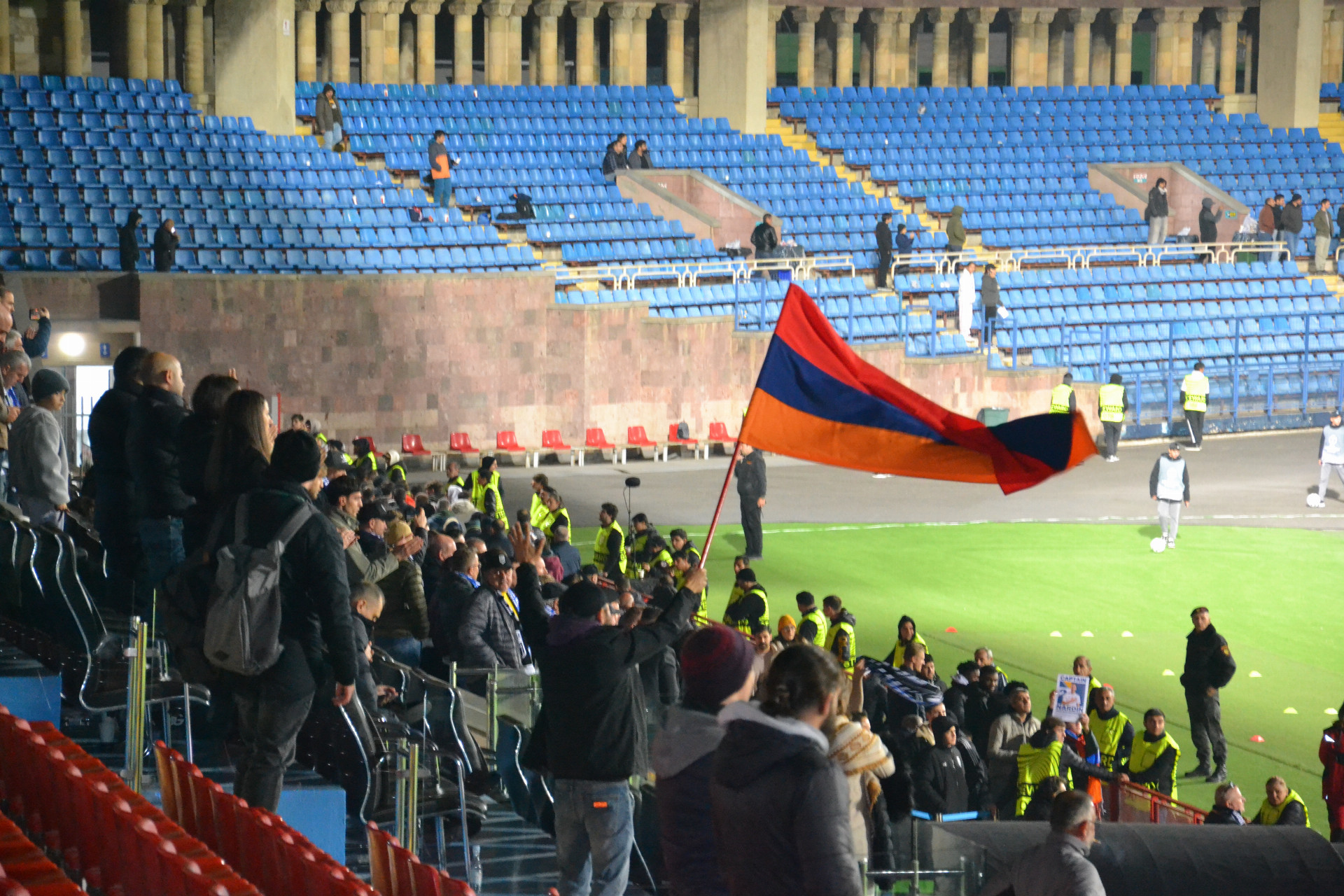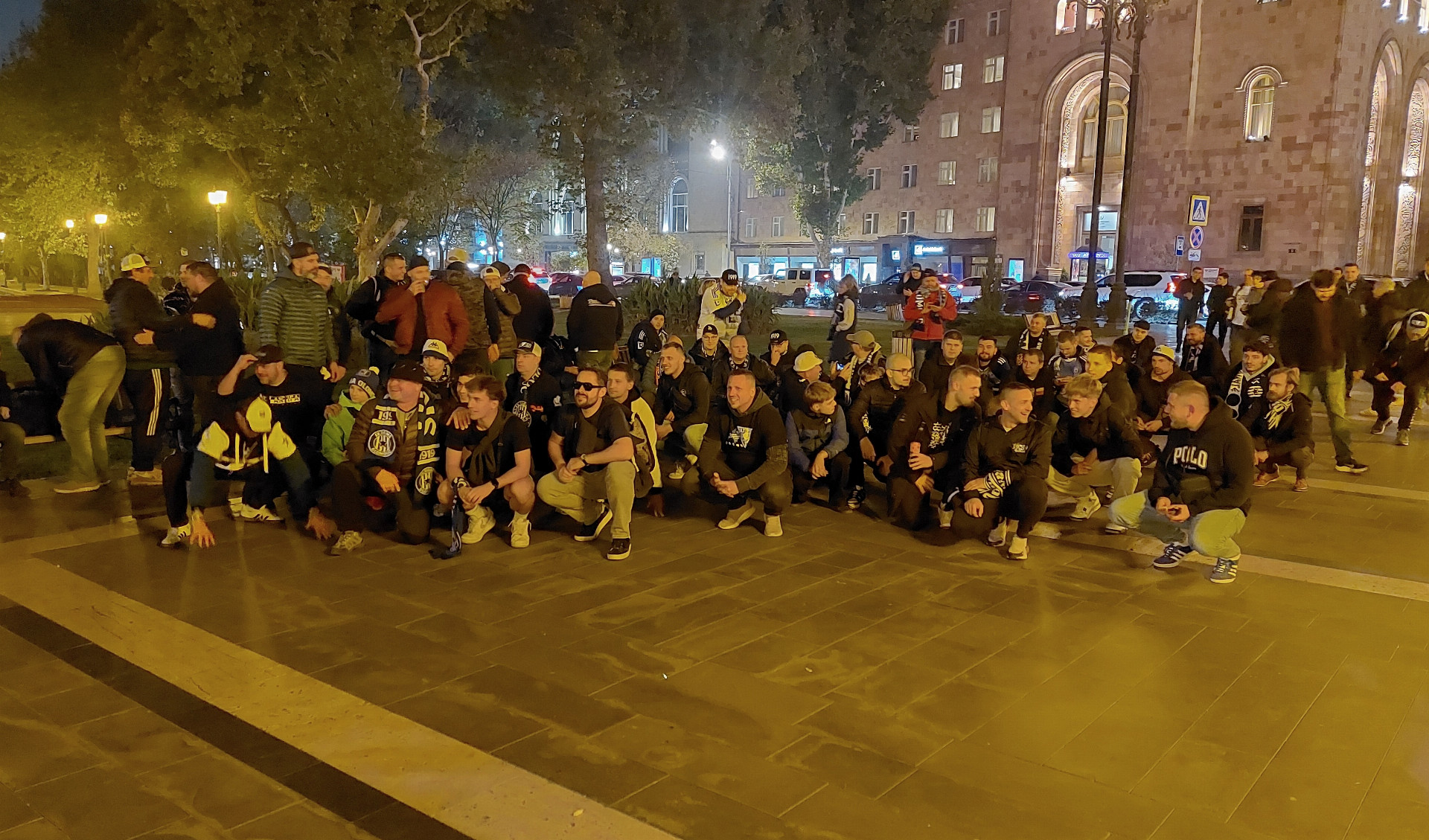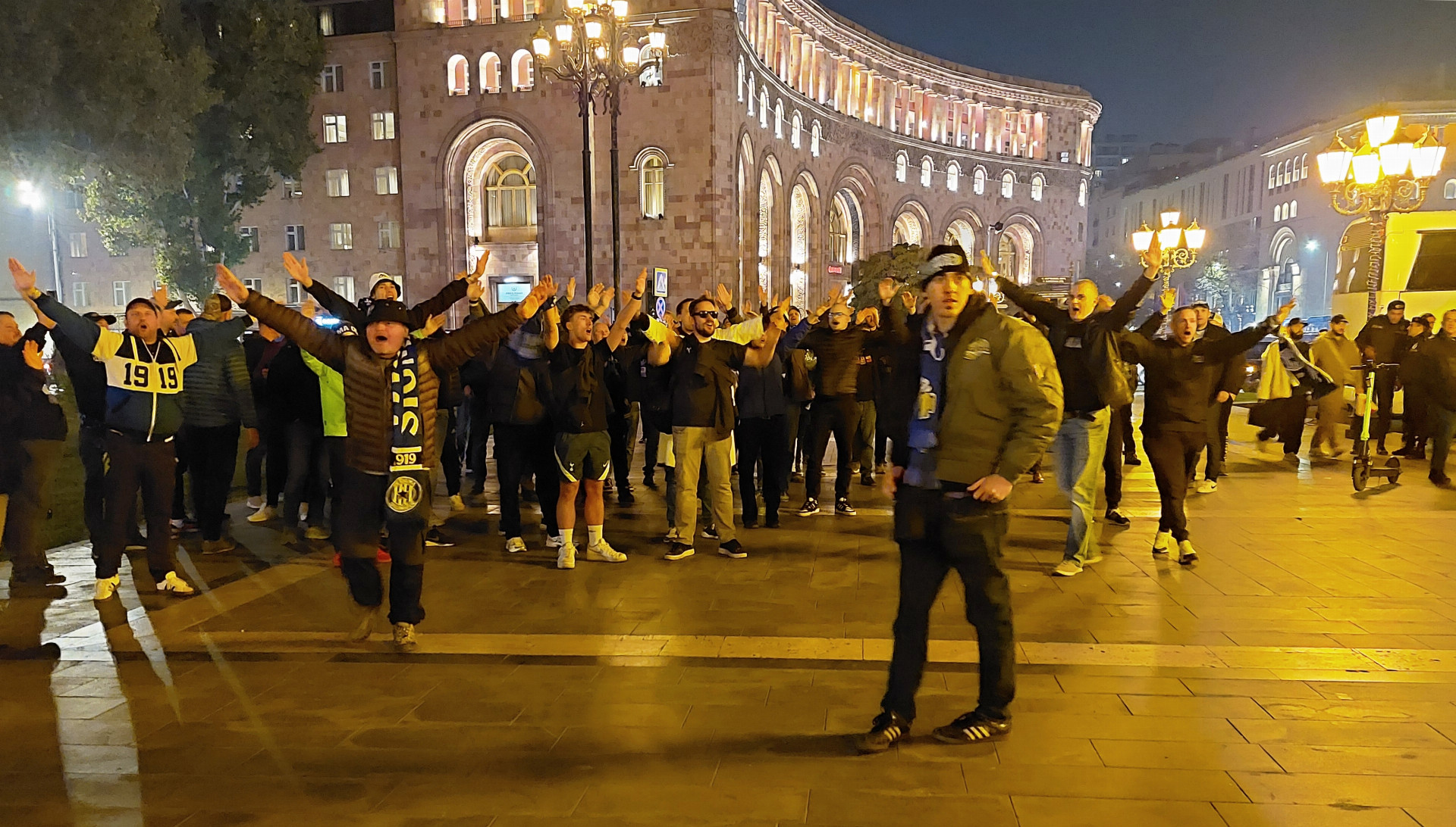 Vadila někde ve městě ona šála klubu, který měl večer vyzvat arménského mistra? Kromě překvapivého setkání s Madriďanem Zachariasem nevyvolala žádnou interakci, pomineme-li pár zvídavých pohledů. Ani v ulicích, ani v baru, kde proběhlo nezbytné ochutnání slavného arménského koňaku. Šéf jednoho večerního podniku dokonce velkoryse popřál úspěch „mému“ týmu. Nejsem si jistý, jestli by stejně přátelsky dopadla taková vycházka třeba po noční Ostravě… I na stadionu seděli domácí fandové přímo vedle novinářů, tudíž mohlo dojít k „přímé interakci“. Občas sice po modrobílé šále pokukovali, ale kromě prosby, zda ji nemohu jednomu z místních po zápase věnovat, se nedělo nic. Takže tolerantní a dobrosrdeční lidé.