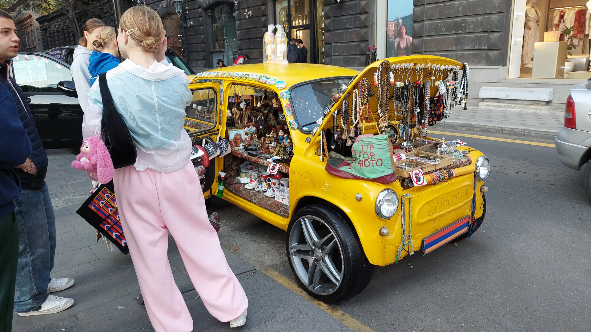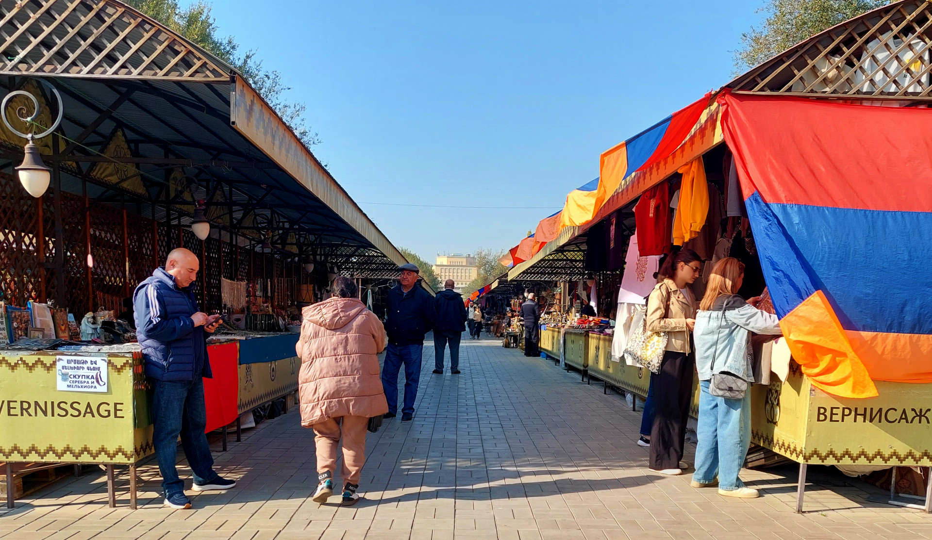Na tržišti se kupodivu nekřičí. Prodejci jsou klidní až flegmatičtí. Trochu jako pavouci číhající v rohu sítě. Když tudy třeba ve čtvrtek večer prochází a skanduje zástup fandů Sigmy, dědové s placatými čepicemi nehnou brvou a dál hrají své vrhcáby nebo šachy. Ovšem zkuste se na chvilku zastavit u některého stánku a projevit sebemenší zájem o zboží, okamžitě se dostanete pod soustředěný útok. Nerozumíte arménsky ani rusky? Nevadí! Vypomůže soused z vedlejšího stánku se základy angličtiny. Nemáte hotovost? Nevadí, támhle je bankomat. Půjdu s vámi, pane!