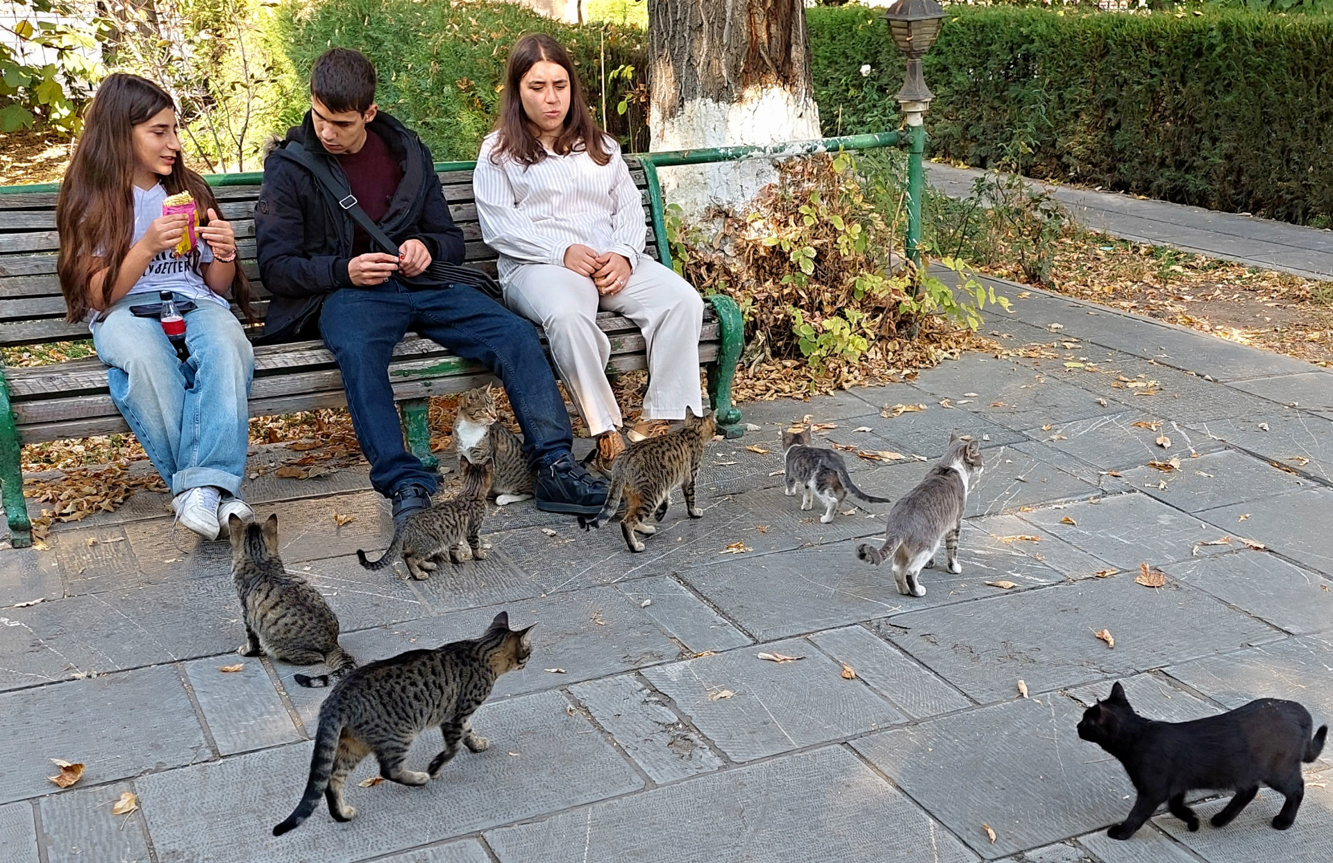 Ano, jsme v Asii. Arménie leží z pohledu Středoevropana až za Tureckem, takže není o čem diskutovat. A ano, mezi atrakce Jerevanu patří také mešita. Jmenuje se Modrá a pochází z roku 1765, z období, kdy byla Arménie součástí Persie. Jenže v celé zemi jsou jen asi čtyři procenta muslimů a praktikující vyznavače Mohamedova učení mnohem spíše potkáte v Londýně či Paříži než v hlavním městě Arménie. Ostatně, ve dvoraně mešity sedí nezahalené dívky bez šátků či burek a s klidem krmí a hladí kočky. No vážně, v této svatyni vládnou kočky. V kontrastu s tím, že jinde v ulicích centra chodec potkává především toulavé psy. Těžko říct, proč zrovna tady mají kočky tak rádi. Hostí je i miskami plnými čerstvých rybiček.