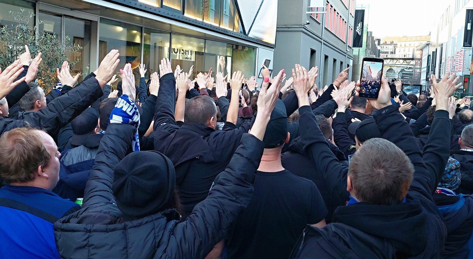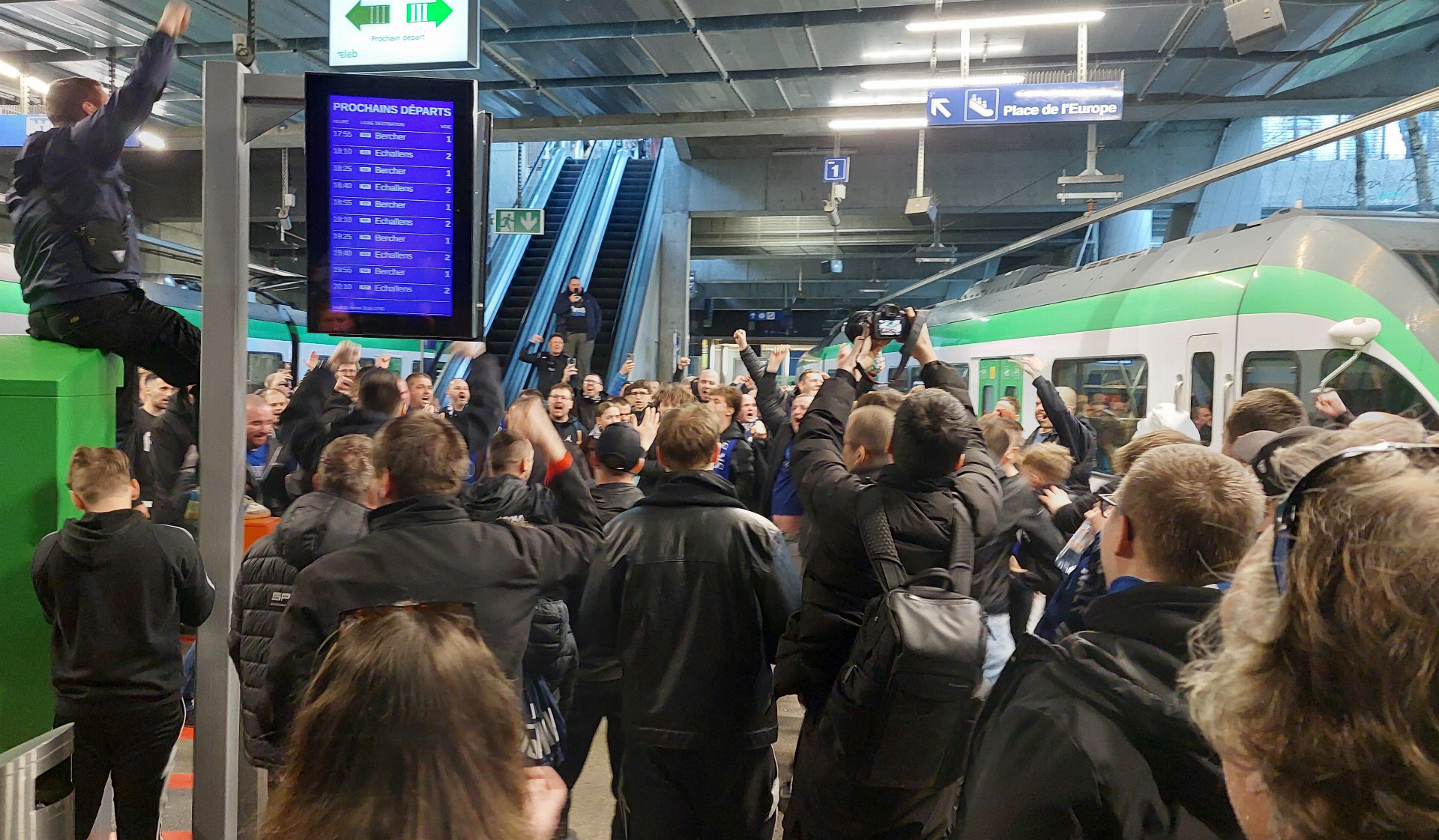 Fanoušci z řad ultras měli sraz na náměstí Esplanade. Kolem podniku King Size Pub se shromáždila více než stovka fandů, k nimž se na náměstí přidaly desítky dalších. Odsud pak vyrazili společně na vlak a dále na stadion. Řada z fanoušků využila možnost jet společně busem, někteří zvolili leteckou přepravu do Ženevy a dále vlakem, jiní se vydali na cestu individuálně auty. Někteří dorazili dokonce až v den utkání, šli na pochod a na stadion a poté zase autem zpátky, bez přenocování.