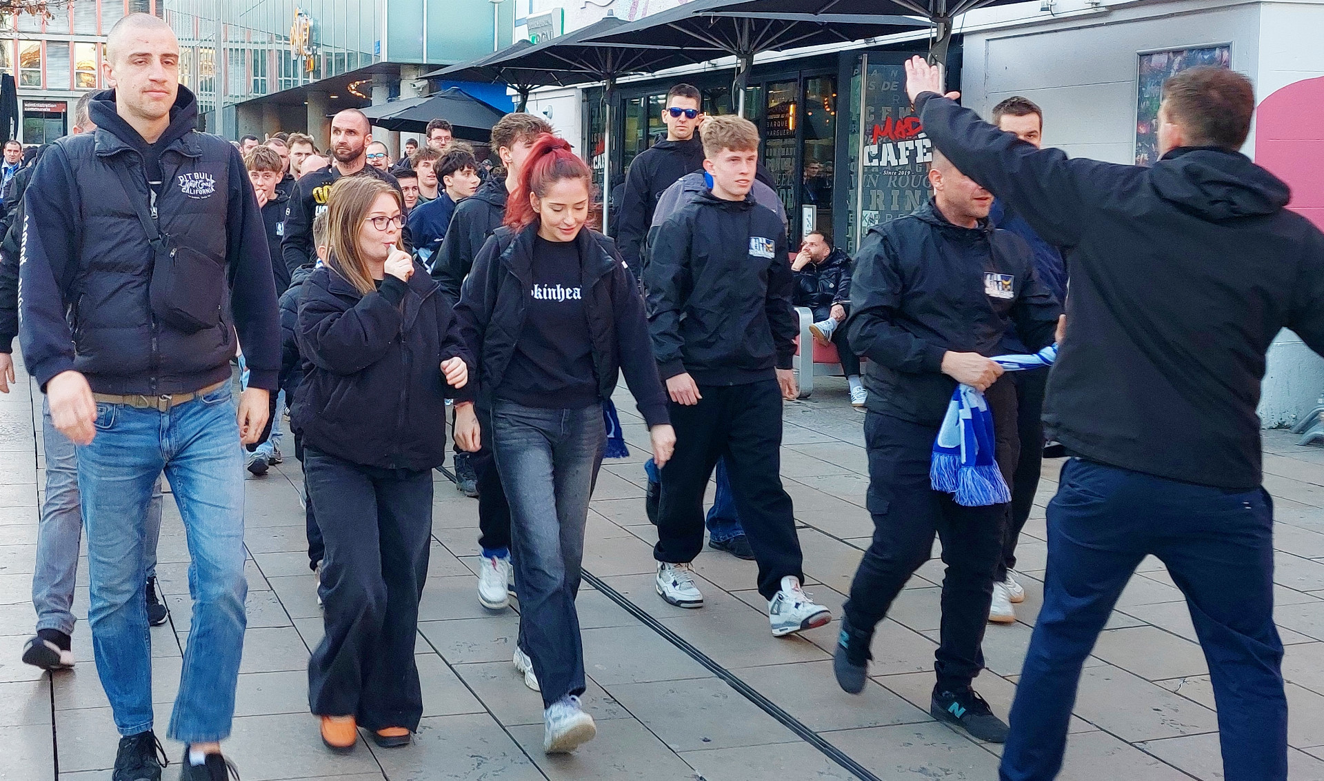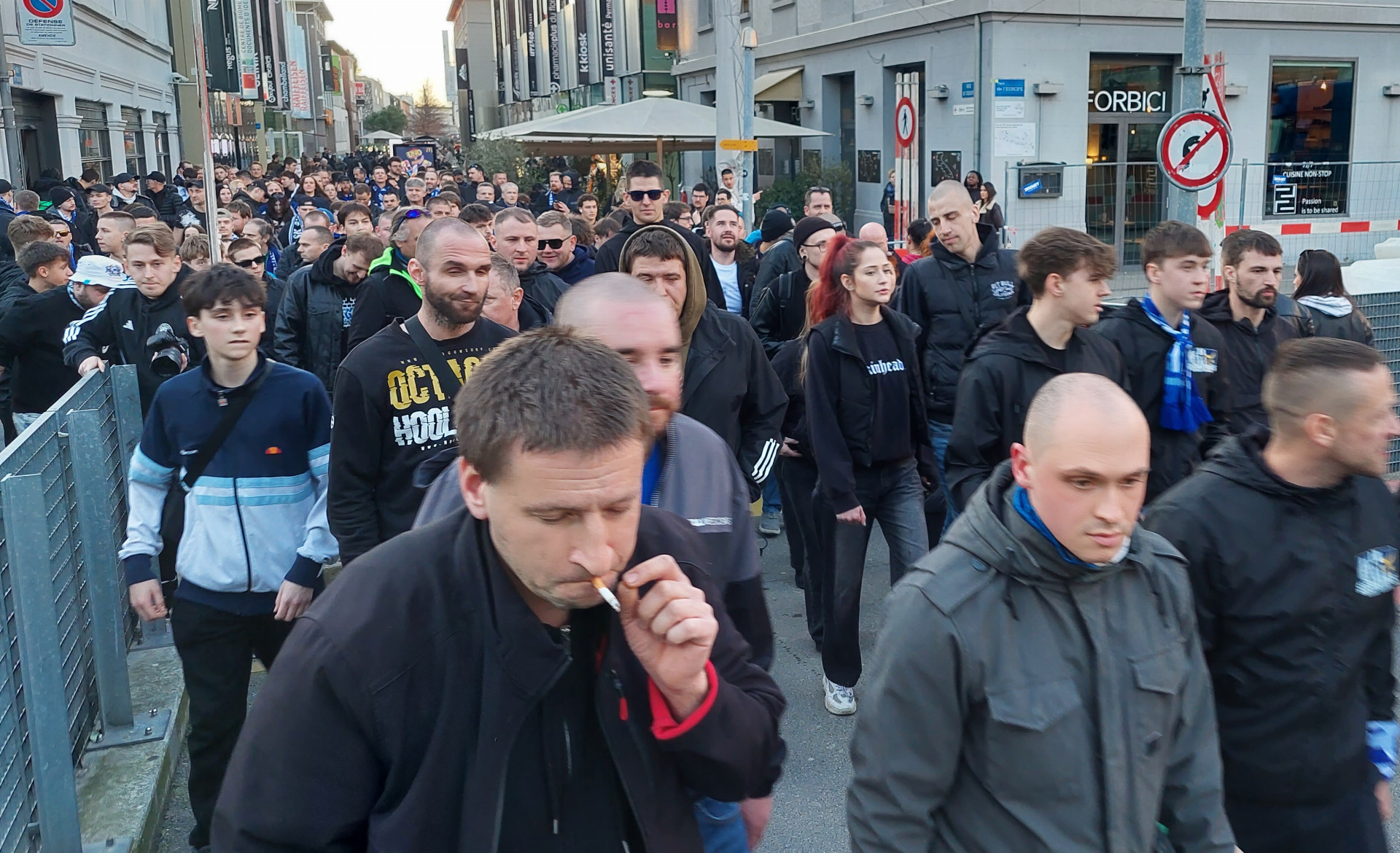 Přesun na stadion proběhl bez konfliktů, i místní obyvatelé se tvářili vesměs příznivě a hanácké fanoušky si fotili a natáčeli. Během utkání sice domácí kotel dával občas najevo silnou nevraživost vůči kotli Olomouce, nicméně se nic podobného jako v Jerevanu, kde domácí pořadatelská služba nezvládala situaci a oba tábory dostaly až moc blízko k sobě, nestalo.