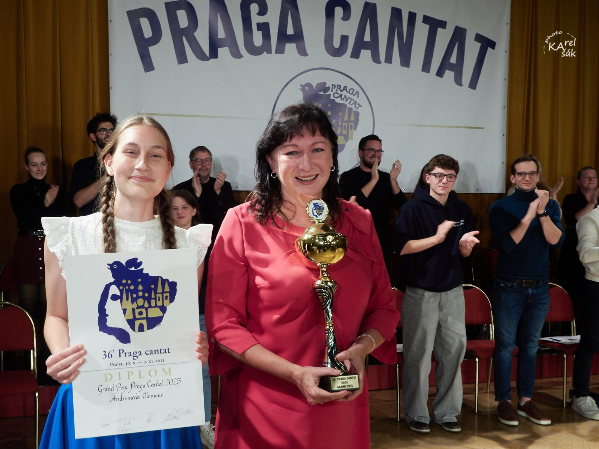Slavnostní vyhlášení výsledků na závěrečném večeru si Andromeda připisuje jako další nezapomenutelný zážitek. „Absolutním vítězem 36. ročníku Praga Cantat a vítězem Grand Prix 2025 se stává……ANDROMEDA OLOMOUC!“ Po těchto slovech ředitele festivalu Jakuba Zichy už následoval jen jásot a mnoho slz dojetí. „Je to tak velký úspěch! V tu chvíli tomu asi nikdo z nás nemohl pořádně uvěřit. A ještě teď po návratu to zpracováváme. Za posledních dvanáct měsíců třikrát účast v Grand Prix, z toho dvě absolutní vítězství a jedno nám uniklo o jediný bod. To se zdá až neuvěřitelné. Andromeda už není malý olomoucký sbor, začíná se o ní vědět a to je nádherná satisfakce. Všechny tyto úspěchy jsou pro děti odměnou za úsilí, čas a srdce, které sboru věnují. To jsou celoživotní zážitky. Jsem vděčná a na děti neskutečně hrdá,“ neskrývá dojetí sbormistryně Hana Vyroubalová.