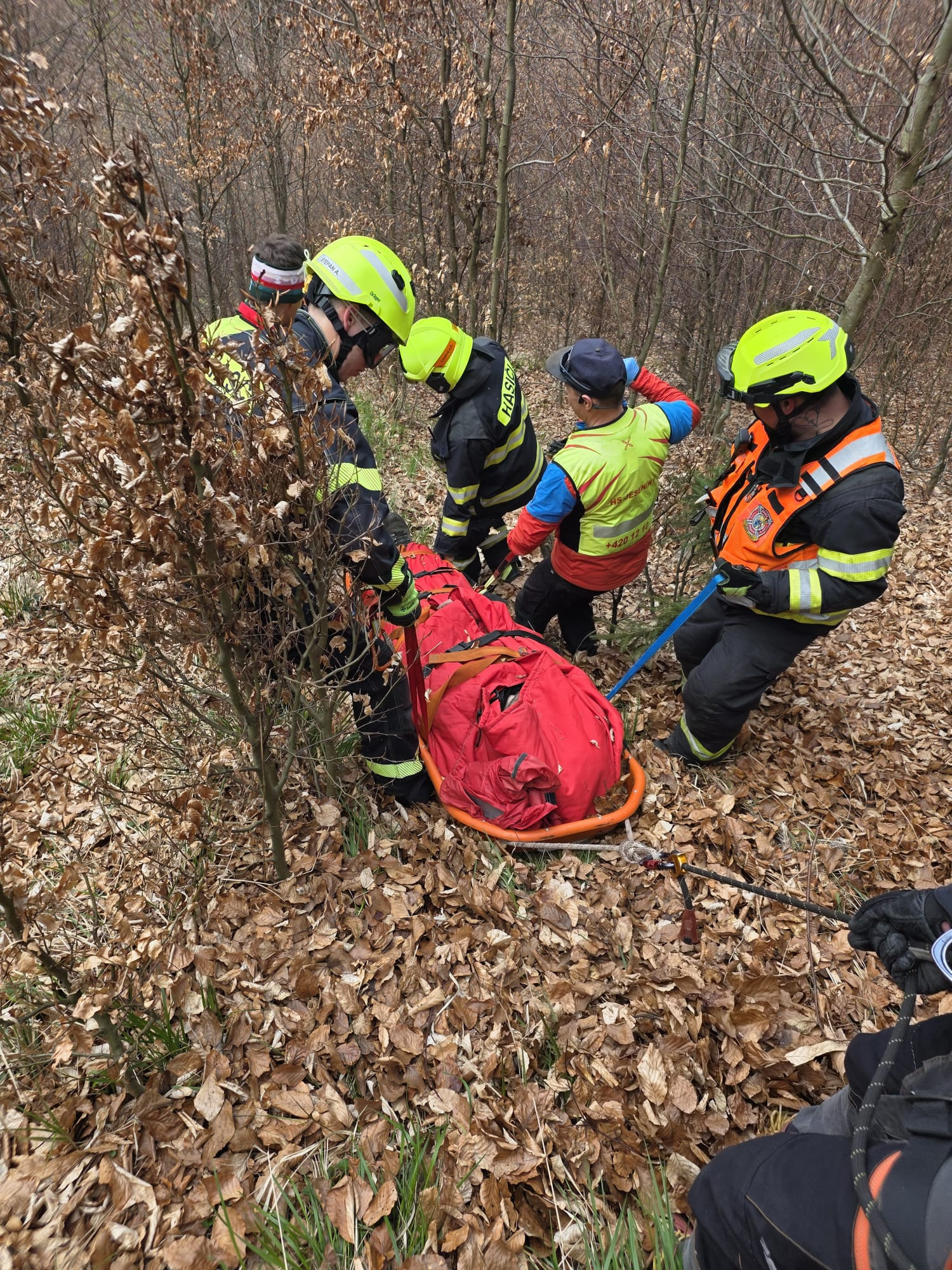 Po ošetření na místě byl pacient uložen do vakuové matrace a transportní vany. Záchranáři museli také vyčistit trasu pro bezpečný přesun k místu, odkud mohl být vyzvednut vrtulníkem. „Ten nemohl na místě přistát, proto byl pacient přeložen do palubních nosítek a spolu s lékařem vytažen navijákem na palubu vrtulníku,“ popsal mluvčí.