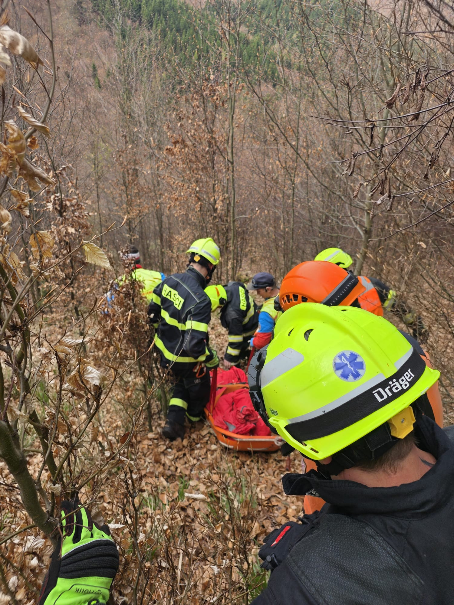 Zásah probíhal v náročném a špatně přístupném terénu, který záchranářům komplikoval postup. „Kvůli obtížnému terénu se k zásahu z vrtulníku slanil lékař Letecké záchranné služby,“ doplnil Koláček.