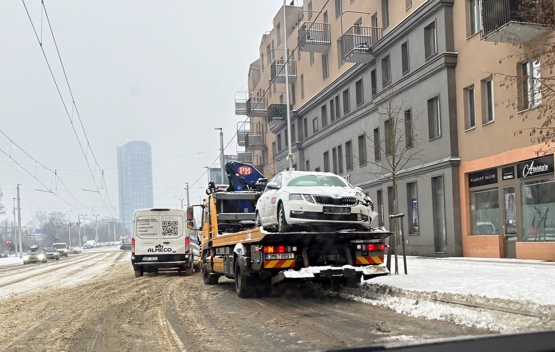 Olomoucký kraj pokryla během noci a rána vydatná nadílka nového sněhu. Ředitelství silnic a dálnic i Technické služby města Olomouce mají na silnicích svou techniku, přesto je ale doprava komplikovaná a na řadě míst vznikají zácpy. Hasiči a policie zasahují od rána také u několika dopravních nehod. Pod sněhem jsou i chodníky.