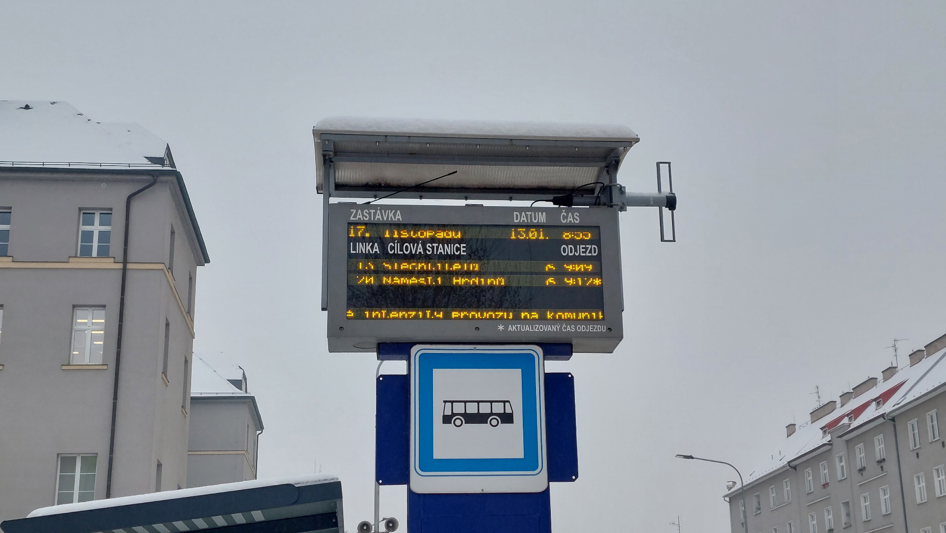 Dopravní podnik města Olomouce informuje o zpoždění autobusových linek, některé z nich dokonce nevyjely vůbec. „Zpoždění spojů autobusových linek cca 10 až 50 minut z důvodu zhoršených jízdních podmínek a provozu na komunikacích,“ uváděl Dopravní podnik města Olomouce na sociálních sítích dnes ráno. Postupně se čas zpoždění zkrátil na nynějších 5 až 25 minut. Některé linky ovšem ráno nevyjely vůbec. Podobné problémy s MHD se odehrávají od rána například i v Přerově.