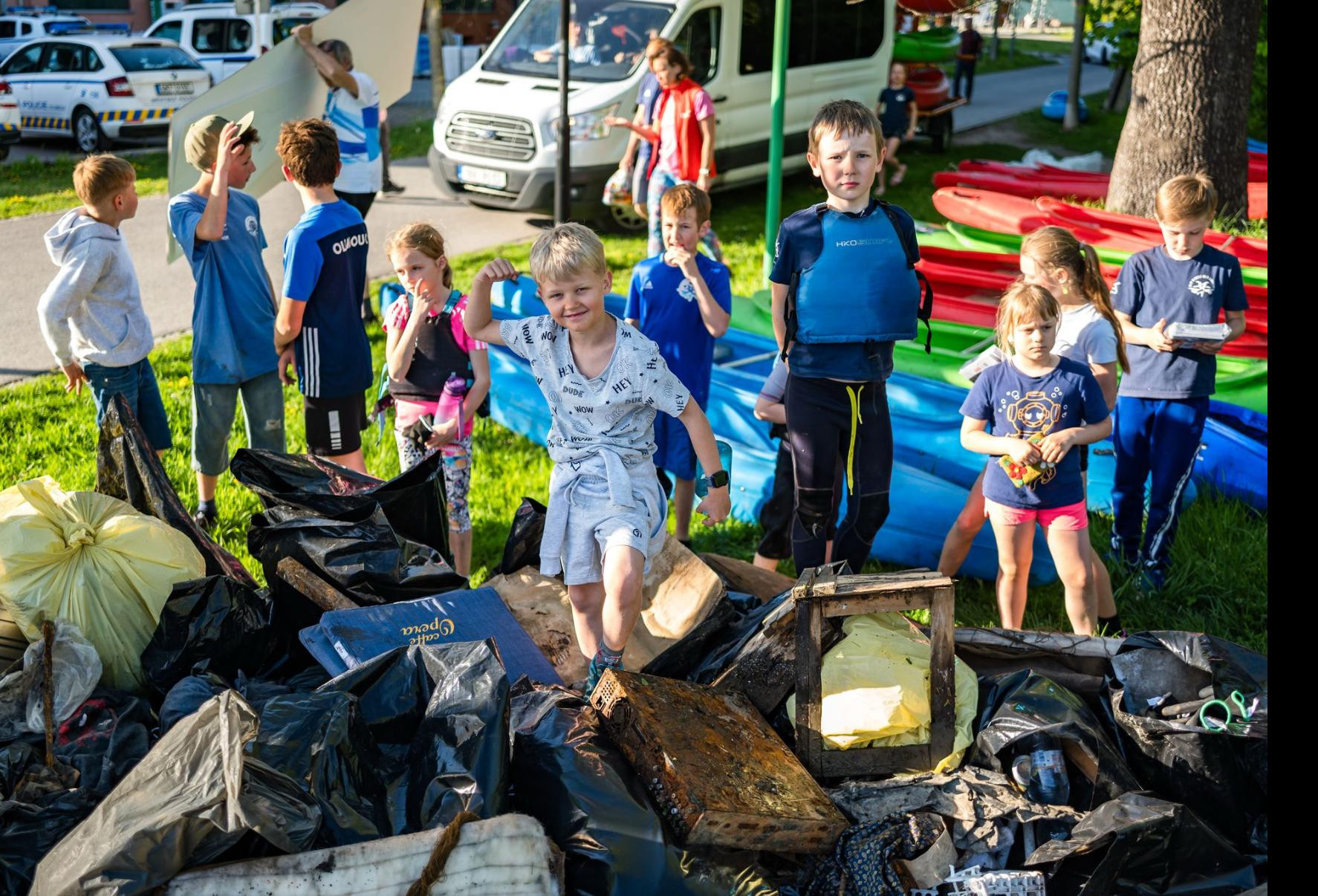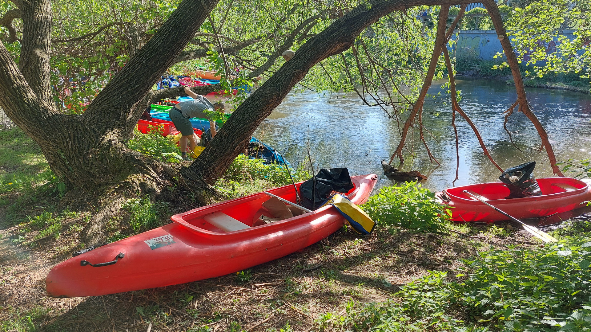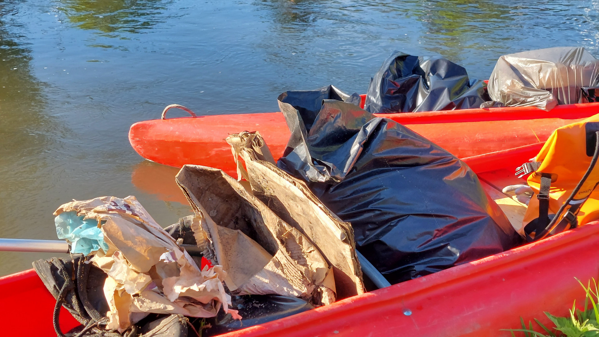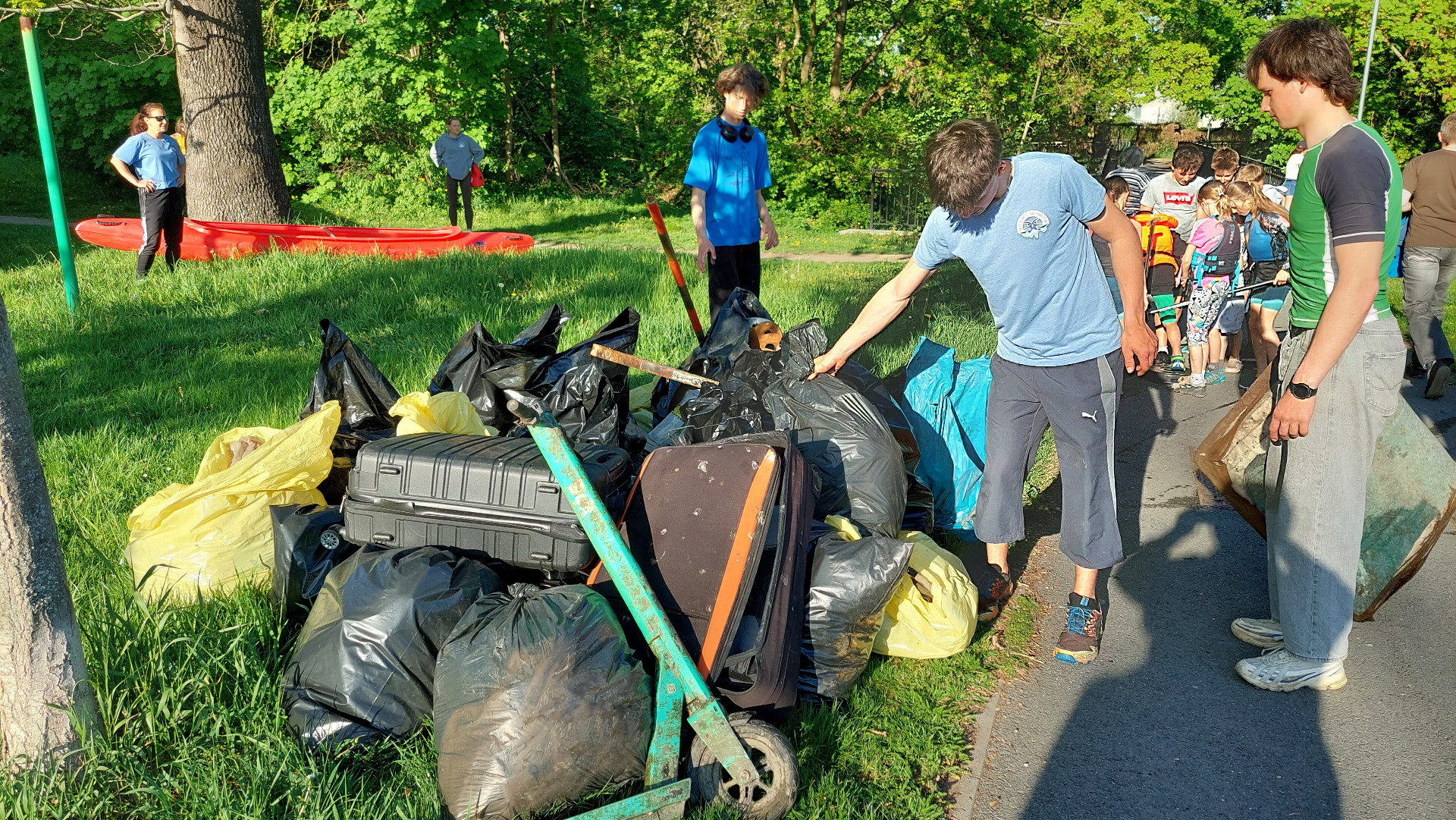 Vodáci se nejprve pustili do úklidu Mlýnského potoka. Z palub raftů a kanoí během více než dvou hodin vytahovali z vody i z břehů nejrůznější odpad – od kufrů a tašek přes stavební materiál až po koloběžky. Nasbírané smetí pak skončilo na velké hromadě u vstupu do Bezručových sadů, kde bylo naloženo do kontejneru. O jeho odvoz se pak postaral státní podnik Povodí Moravy.