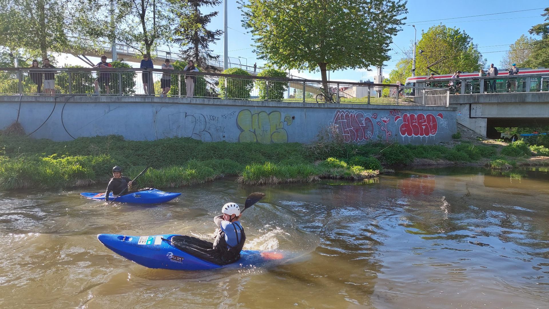 Sportovní výkony sledovali se zájmem náhodní kolemjdoucí, což napovídá, že by větší využití této části Mlýnského potoka bylo určitě Olomoučany vítáno.