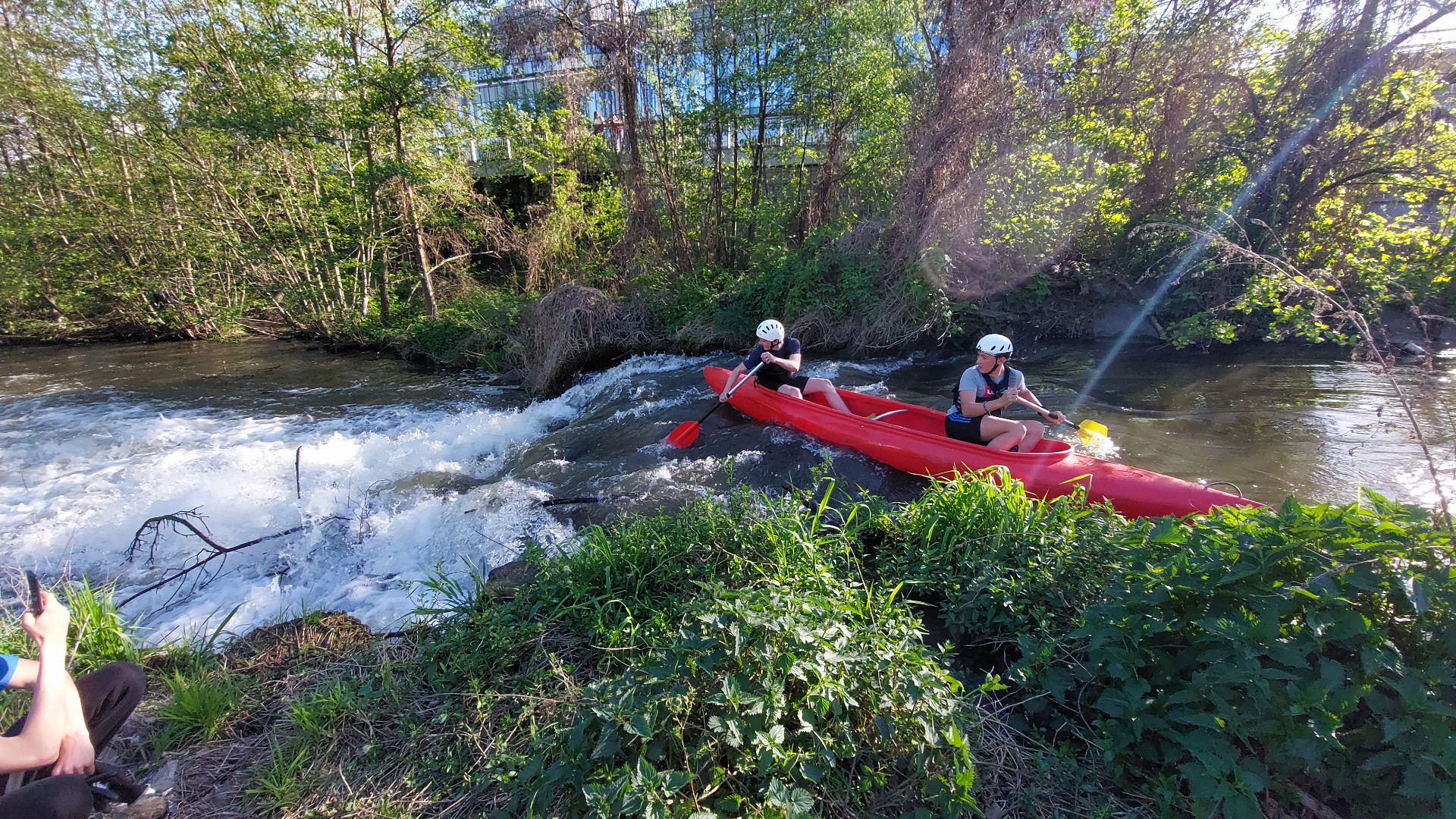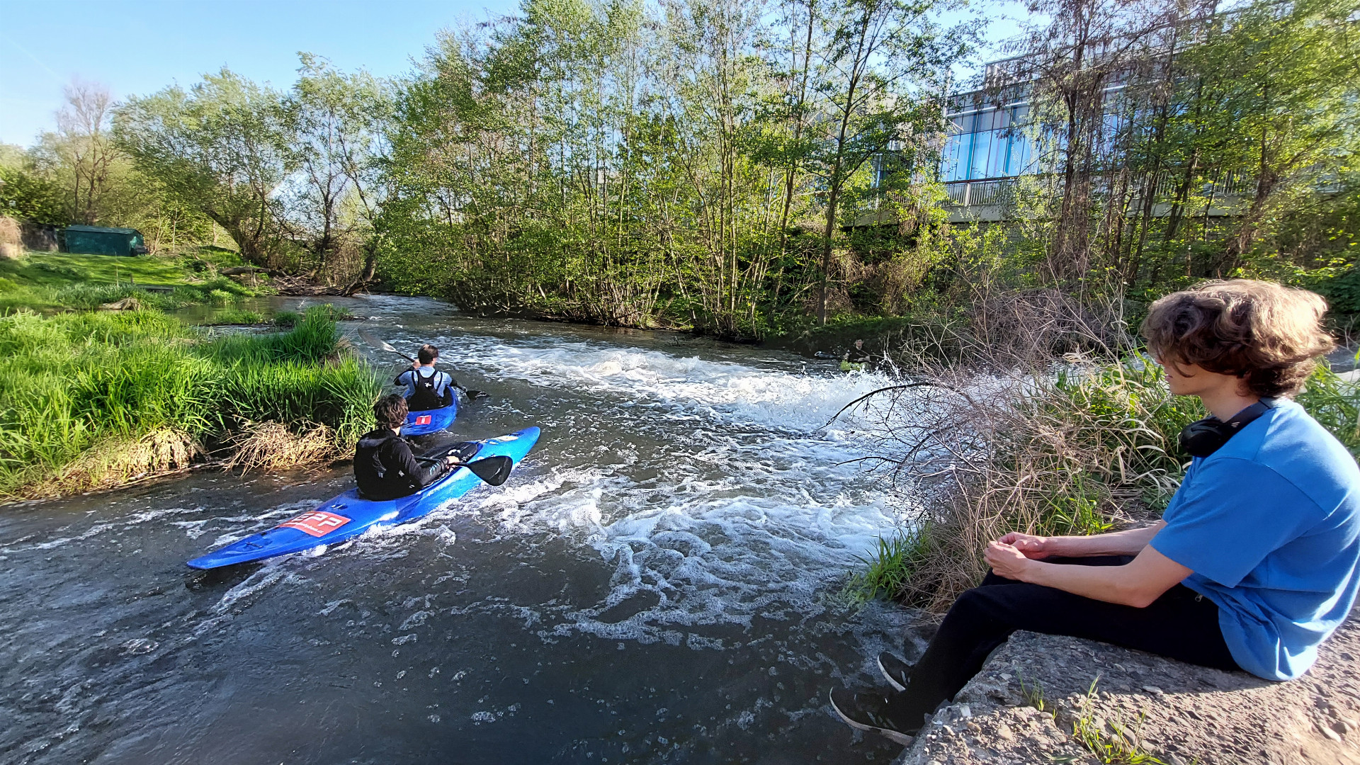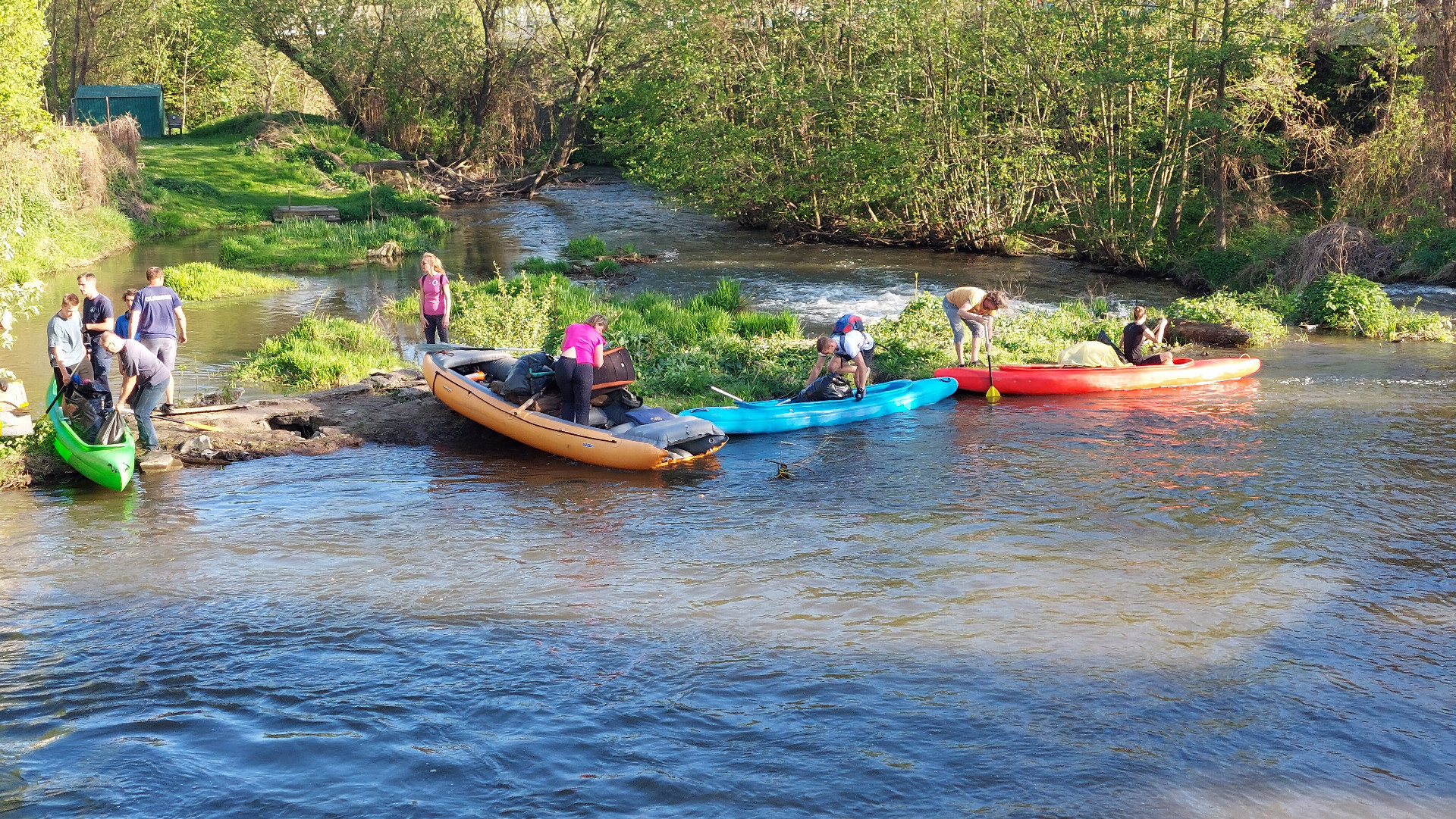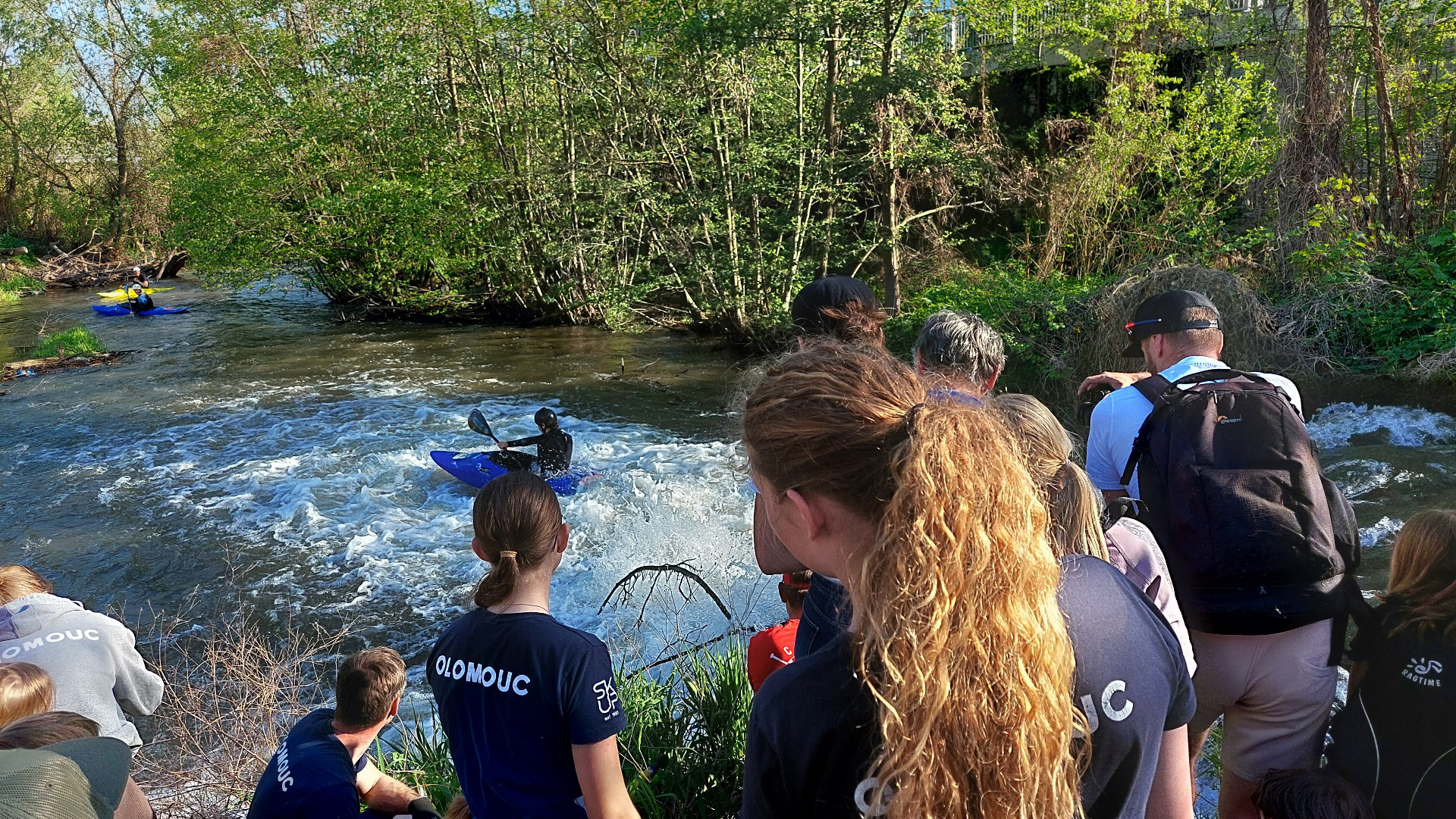 Po úklidu následovala podívaná, která zaujala desítky přihlížejících. Mladí kanoisté se rozhodli pro prvosjezd historického jezu u Šantovky, kde před 15 lety vznikla průrva a kudy se valí nejsilnější proud vody. Někteří odvážlivci dokonce sjeli jez pozpátku.