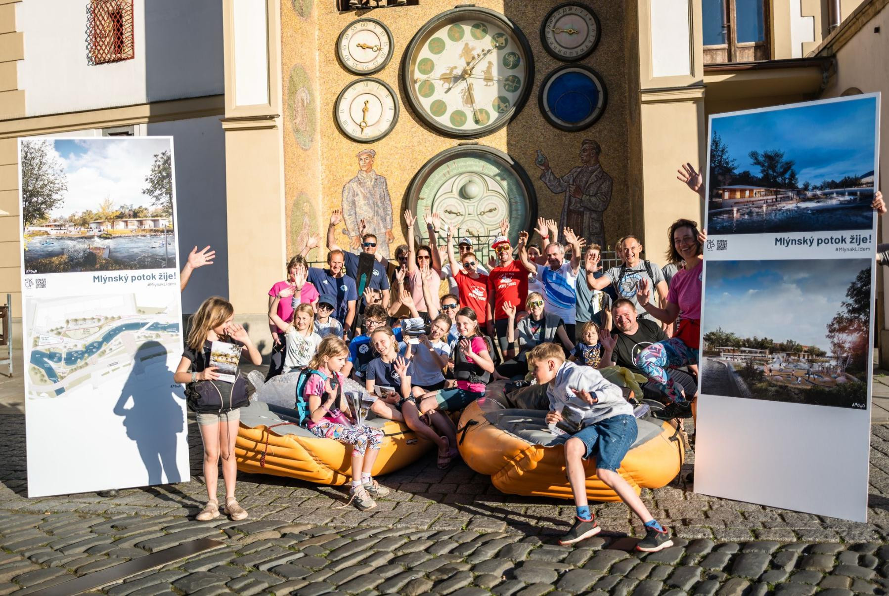 Po sportovním představení se vodáci vydali na pochod městem, během kterého rozdávali letáčky a u radnice představili vizualizace plánované vodácké dráhy. Tento projekt, který by měl vzniknout v blízkosti Galerie Šantovka, je snem olomouckých kanoistů už řadu let.
